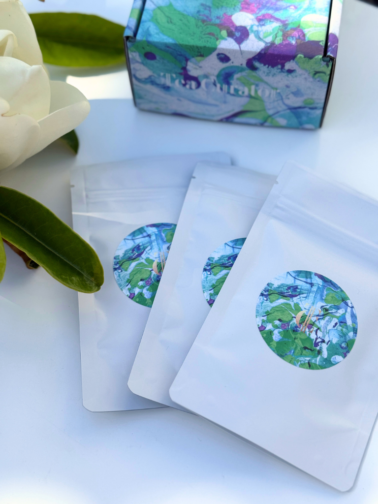 Each tea is 20 grams (enough to serve seven people hot steeped or make 2 litres when cold-brewed in sparkling water. However, each tea can be steeped at least twice providing tea for even more).