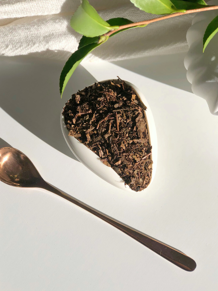 Hojicha is a roasted Japanese green tea made with mature leaves and stalks. The roasting process creates the warm brown colour of the leaves, its roasty notes and the stalks add a touch of sweetness. The leaves infuse into a glowing, bronze liquor with notes of roasted nuts, tobacco and a pleasant lingering peat-smoke aftertaste.