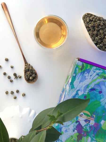 This Imperial Grade Jasmine Pearls green tea is made with 2025 ‘first flush’ leaves (the very first leaves to appear in spring after the winter dormancy) and fresh Jasmine petals. A unique steaming process is used to naturally draw out the petal’s fragrance into the tea leaves. The petals are then discarded and the tea leaves expertly hand-rolled into small pearls, sealing in the floral aroma. The result is an aromatic, fresh and fragrant tea.