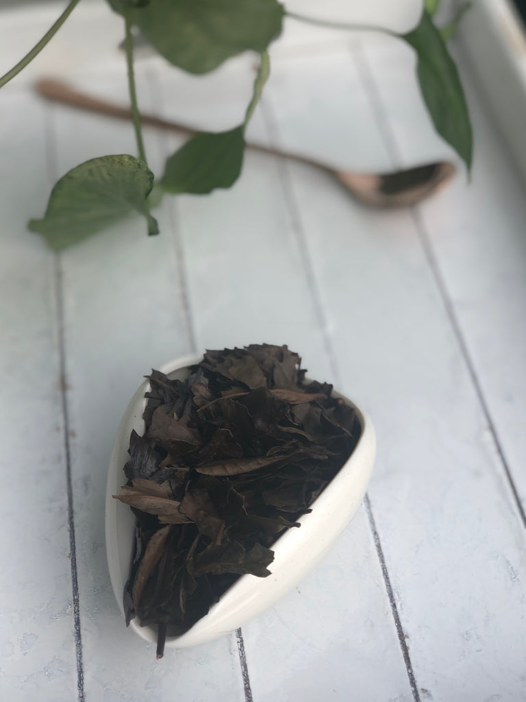 These beautiful, large, glossy leaves have been left on the tea plant to mature over the winter, before being harvested then steamed, rolled, dried and roasted - creating a tea that is light and sweet and almost completely caffeine free.