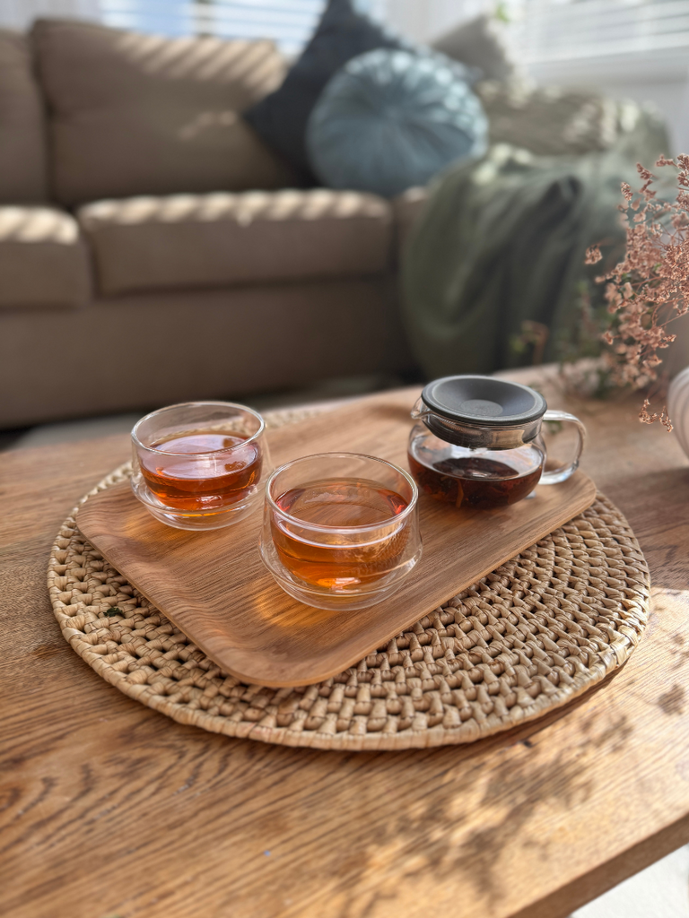 * tea glasses, teapot and smaller tray (Teak 270mm) sold separately